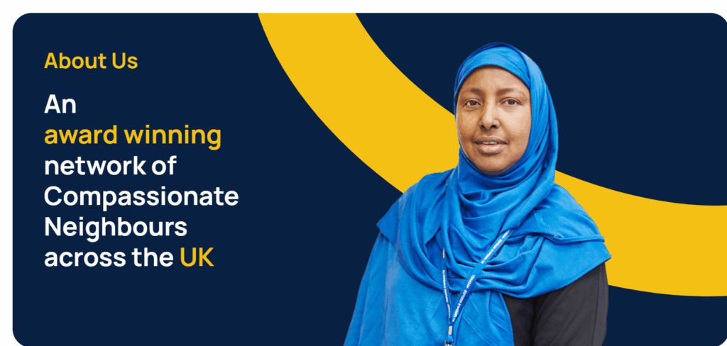 An award winning network of Compassionate Neighbours across the UK – local volunteers who offer an hour or two per week of friendship to someone who is elderly, frail or living with a serious illness.